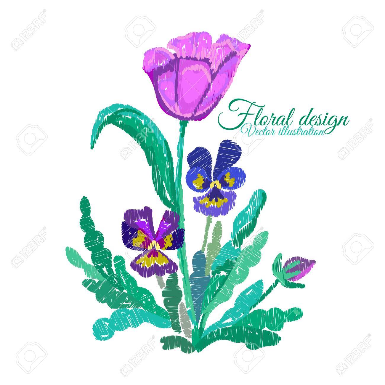 Tulpe Und Stiefmutterchen Bestickt Blumen Stickerei Auf Weissem