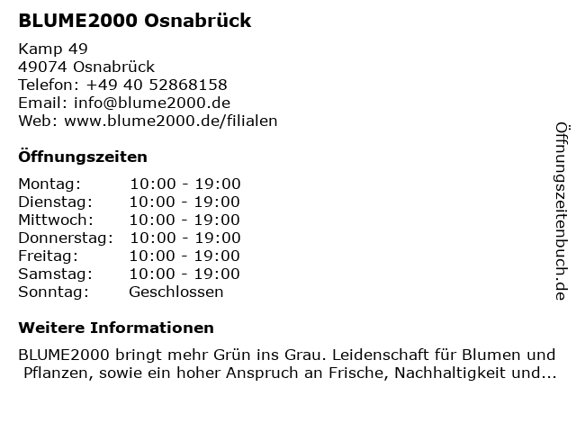 ᐅ Offnungszeiten Blume 2000 Osnabruck Kamp 49 In Osnabruck